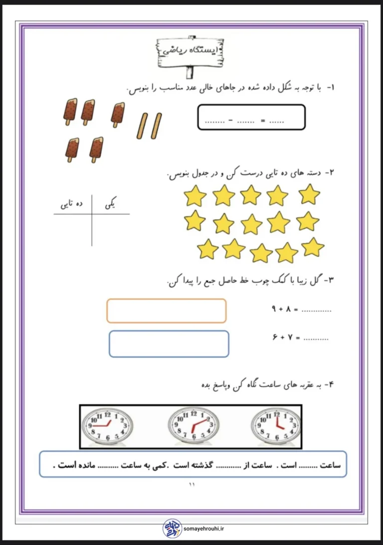 آزمونک ریاضی دوم دبستان، پلی استوار برای ورود دانشآموزان به دنیای جذاب اعداد و محاسبات است. در این پایه، کودکان با مفاهیم اعداد سه رقمی، جمع و تفریقهای ذهنی و کتبی با انتقال و بدون انتقال، شناخت اشکال هندسی ساده و مفاهیم اندازهگیری زمان و طول آشنا میشوند. هدف اصلی این دوره، تقویت تفکر منطقی و حل مسئله از طریق بازی و فعالیتهای عملی است. تاکید بر درک مفاهیم به جای حفظ کردن صرف، زمینهساز موفقیتهای آتی در ریاضیات خواهد بود. با تمرینهای متنوع و چالشبرانگیز، میتوانیم پایههای محکمی از دانش ریاضی را در ذهنهای کنجکاو آنان بنا نهیم.