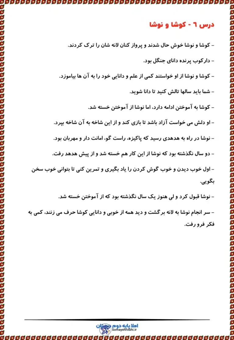 آزمون املا درس ششم فارسی دوم دبستان