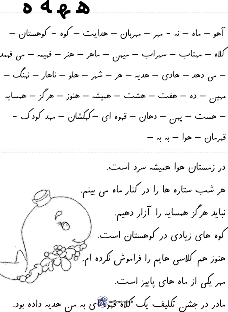 آزمون املا نشانه «هـ ه ـه ه» فارسی اول ابتدایی