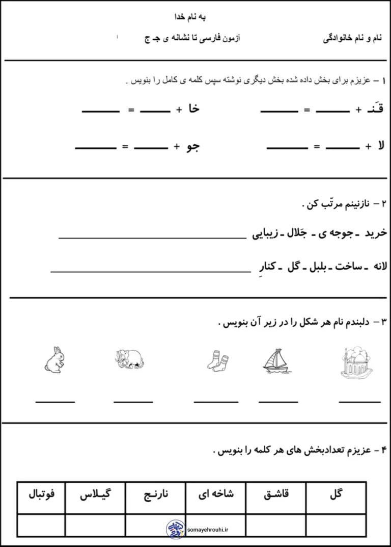 این آزمون مناسب چه پایهای است؟ → پایه اول دبستان