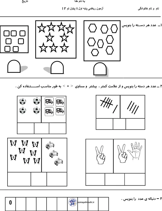 آزمون تم 1 تا 12 ریاضی اول ابتدایی