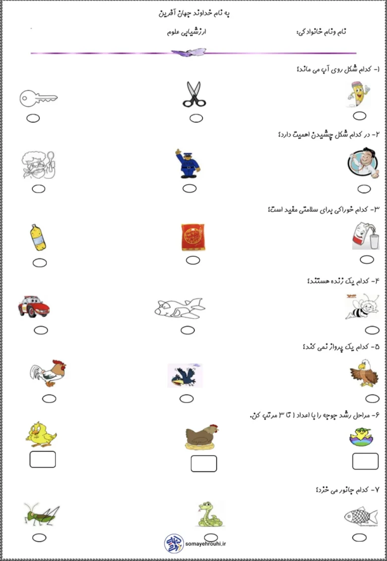 آزمون درس ۱ تا ۵ علوم کلاس اول دبستان