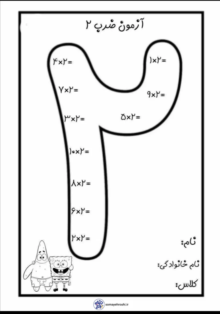 آزمون ضرب عدد۲ پایه سوم دبستان