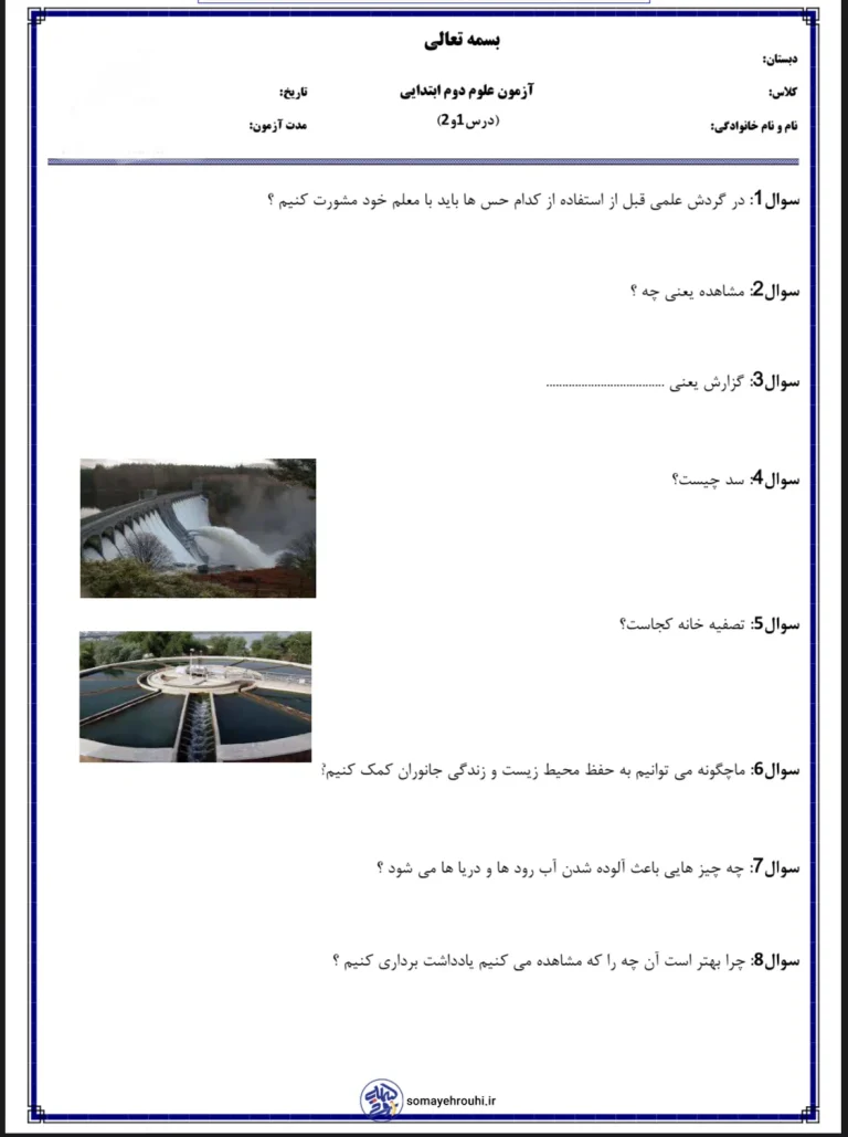 آزمون علوم درس ۱ و ۲ پایه دوم دبستان با جواب
