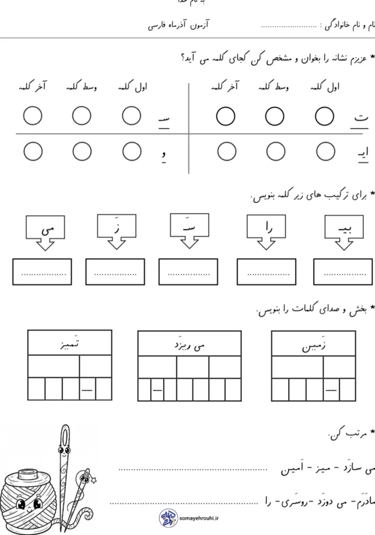 آزمون فارسی آذرماه پایه اول دبستان