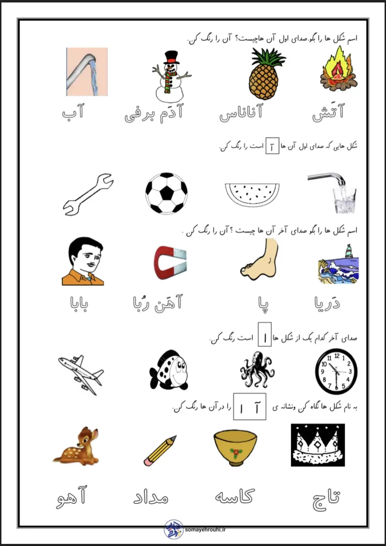 آموزش الفبا، اولین و شیرینترین قدم در مسیر سوادآموزی کودکان است. این آزمون نشانه آا فارسی اول دبستان، یک ابزار کمکآموزشی خلاقانه برای آشنایی فرزند دلبند شما با نشانههای زبان فارسی، بهویژه در پایههای پیشدبستانی و اول دبستان، طراحی شده است. با بهرهگیری از تصاویر رنگارنگ و تمرینهای ساده و هدفمند، کودک شما با موقعیتهای مختلف صدا (اول، وسط و آخر کلمه) آشنا میشود و مهارتهای شنیداری و دیداری خود را تقویت میکند. این کاربرگها تمرینی عالی برای تثبیت آموختههای مدرسه در محیط خانه هستند و یادگیری را به یک بازی لذتبخش تبدیل میکنند.