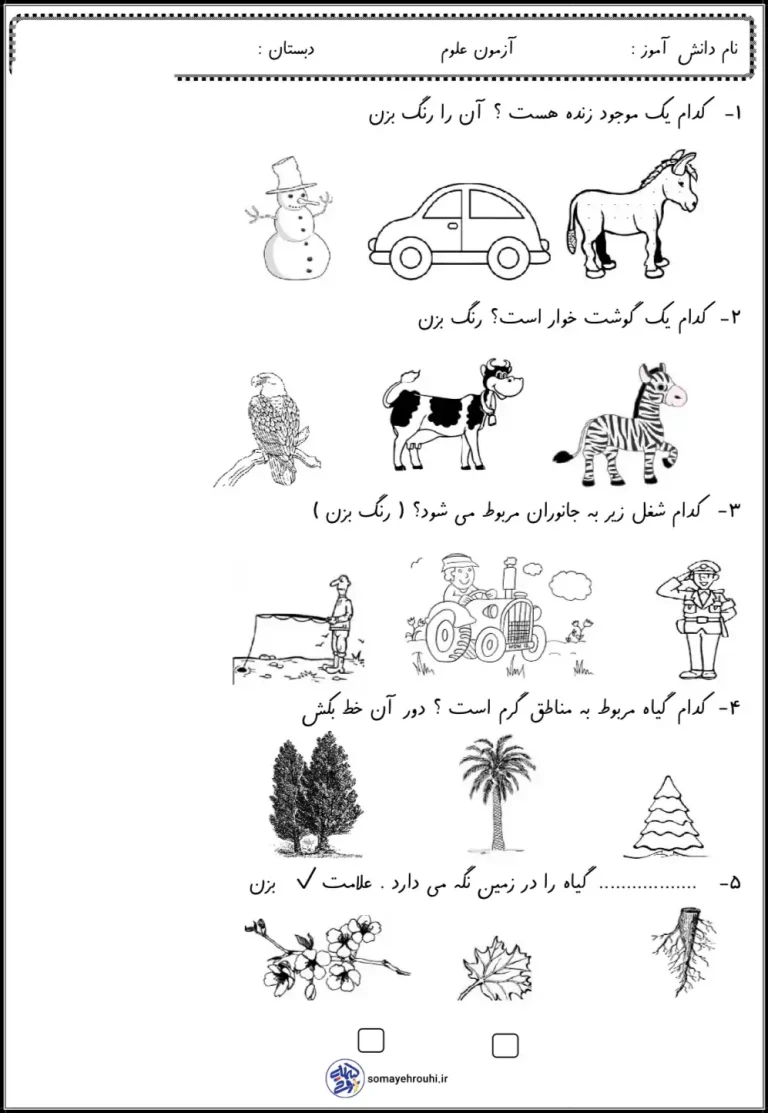 آزمون نوبت اول علوم پایه اول دبستان