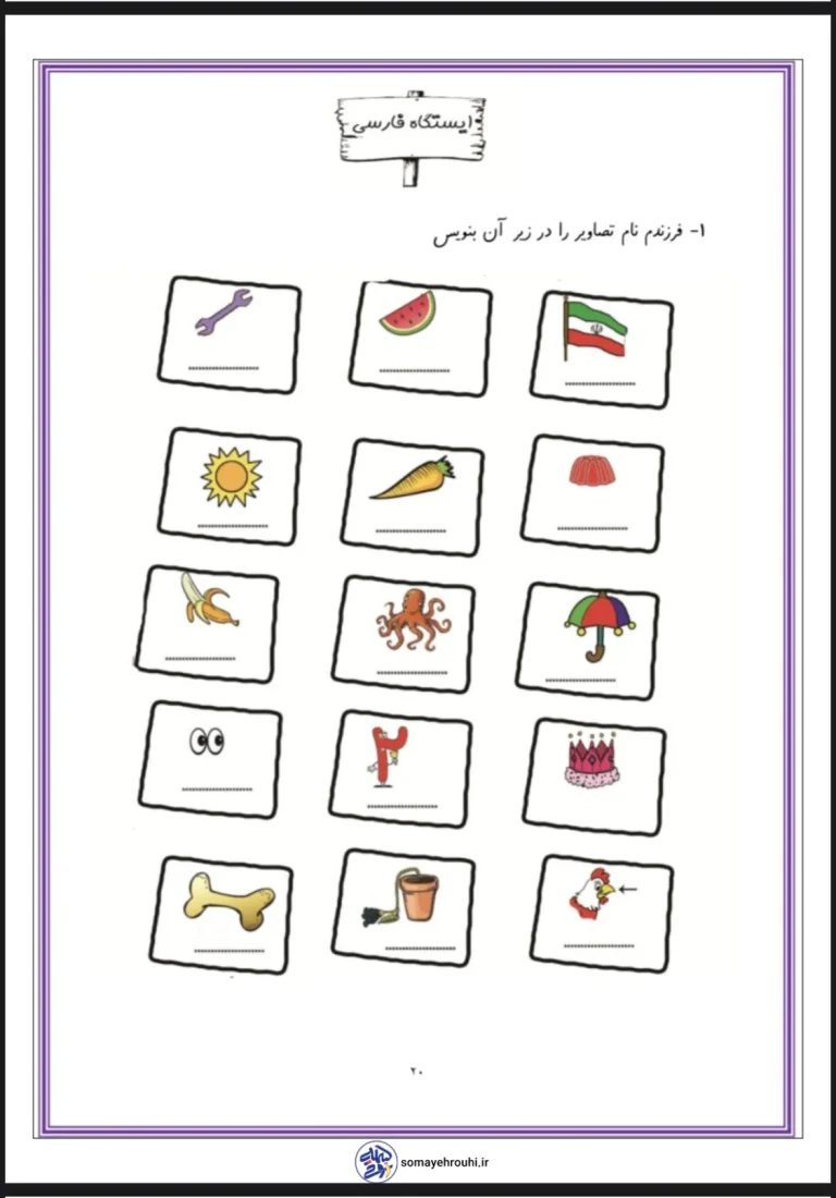 یادگیری فارسی با بازی و تصاویر، شیرینتر از همیشه است! ✨ در دنیای کودکان، آموزش وقتی مؤثر است که با شادی و هیجان همراه باشد. این نوع تمرینها نه تنها حافظه دیداری شما را تقویت میکنند، بلکه ذهن شما را برای کلمهسازی و جملهنویسی آماده میسازند. با این روش، دیگر هیچ کلمهای برای شما غریبه نیست و میتوانید به راحتی آنچه را که میبینید، بنویسید و بخوانید!