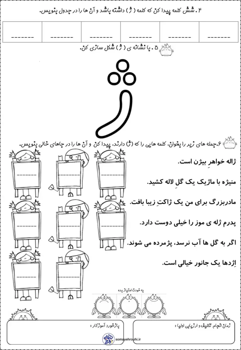 تکلیف نشانه (ژ) فارسی اول ابتدایی