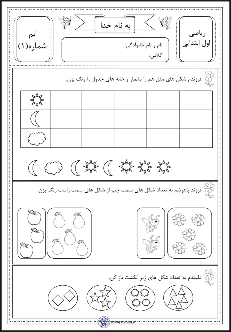 دانلود رایگان کاربرگ تم یک ریاضی اول دبستان