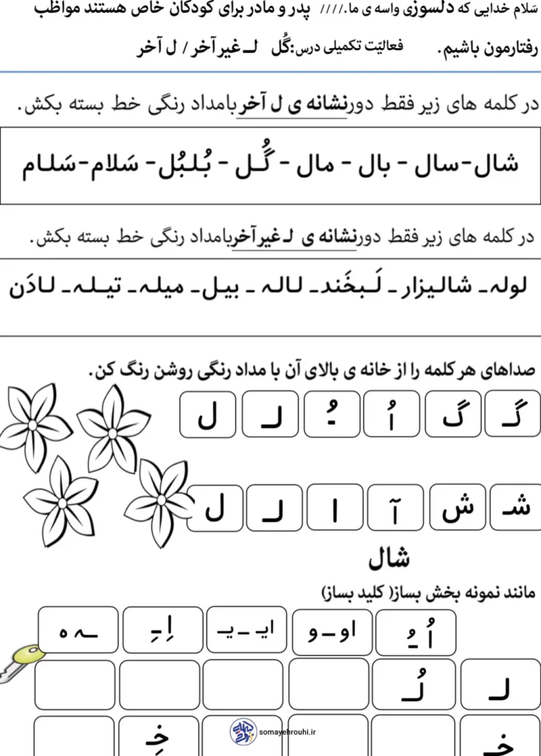 دانلود کاربرگ رایگان حرف (ل) کلاس اول