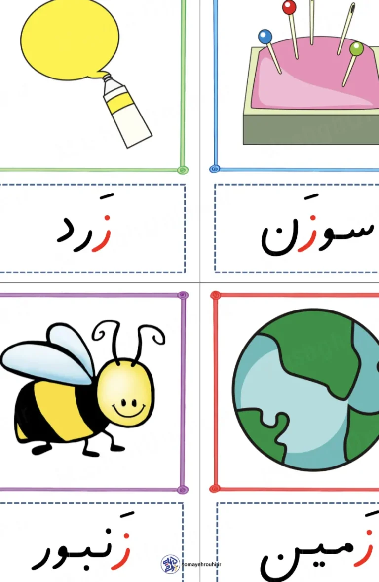 فلش کارت آموزش نشانه ز اول ابتدایی