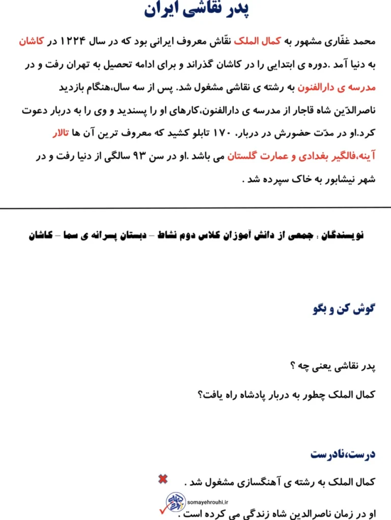 ۱. آشنایی با مفاخر: شناخت یکی از بزرگترین نقاشان تاریخ ایران و تأثیر او بر هنر.