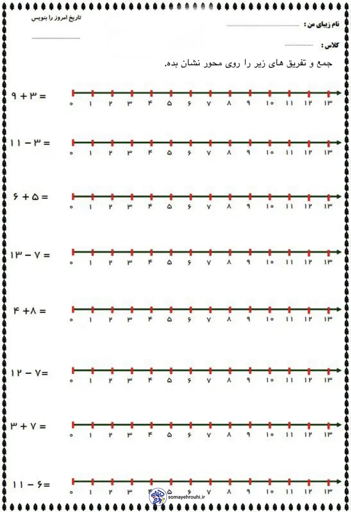 کاربرگ جمع و تفریق روی محور کلاس دوم