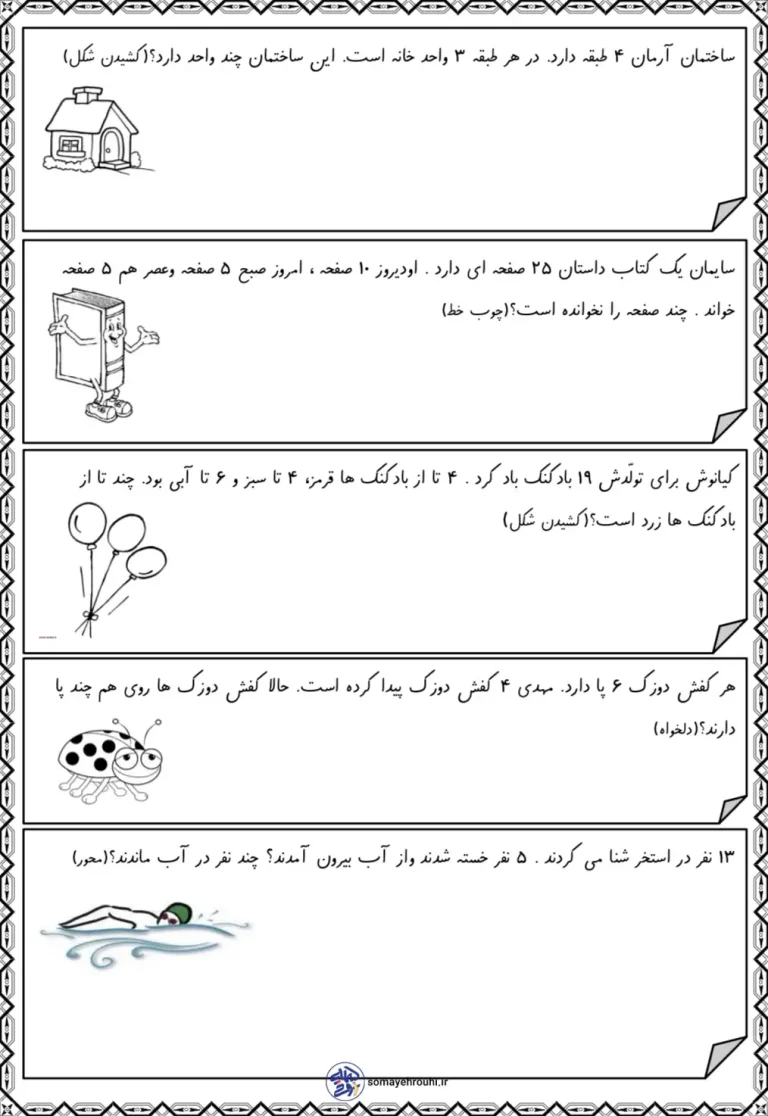 نمونه سوال حل مسئله ریاضی کلاس اول