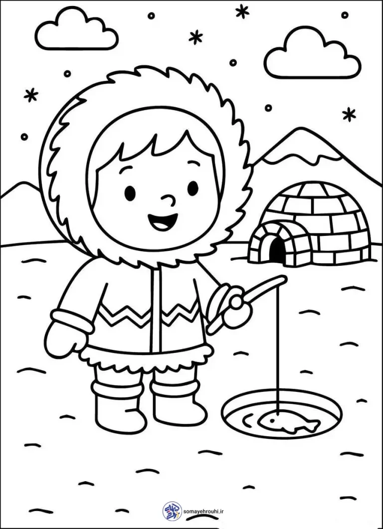همچنین سطح یخزدهی زمین و سوراخ یخ که کودک از آن ماهیگیری میکند، یکی از فعالیتهای رایج در مناطق سردسیر در فصل زمستان را نشان میدهد. این کاربرگ با تمرکز بر عناصر تصویری، مفهوم زمستان و زندگی در این فصل را بهصورت عینی و قابل درک ارائه میدهد.