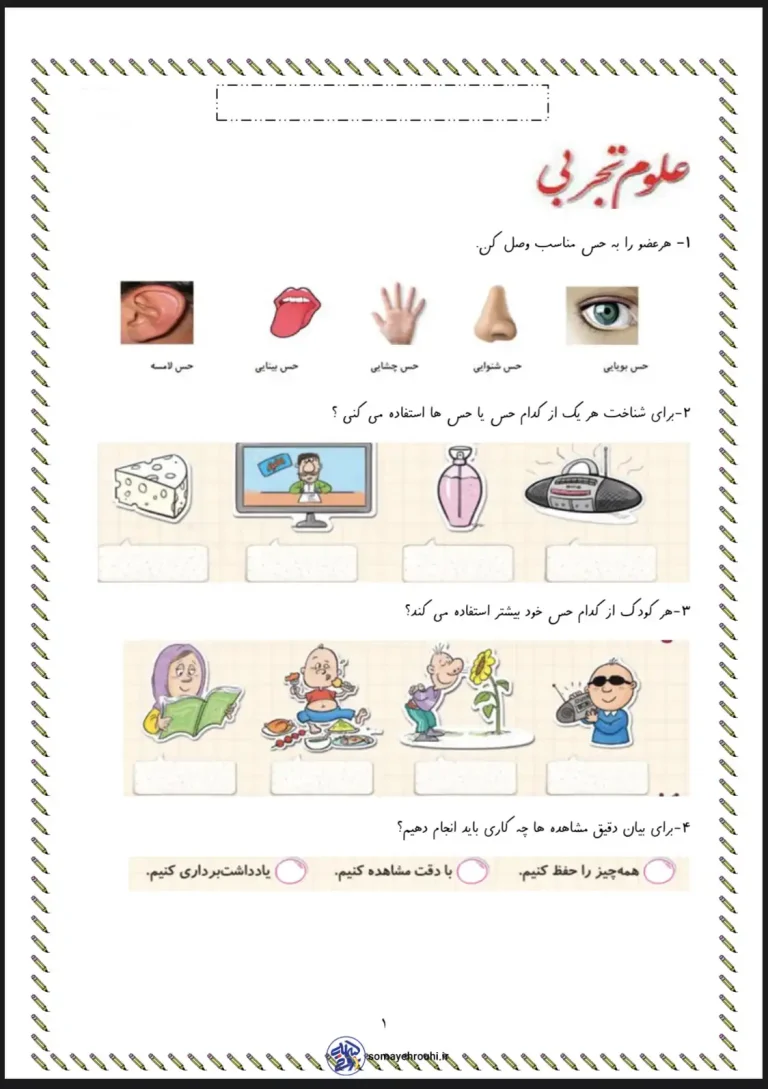 - تنوع در تمرینات: شامل سوالات تشریحی، چهارگزینهای، نقاشی، بازیهای فکری و بخشهای خلاقانه.