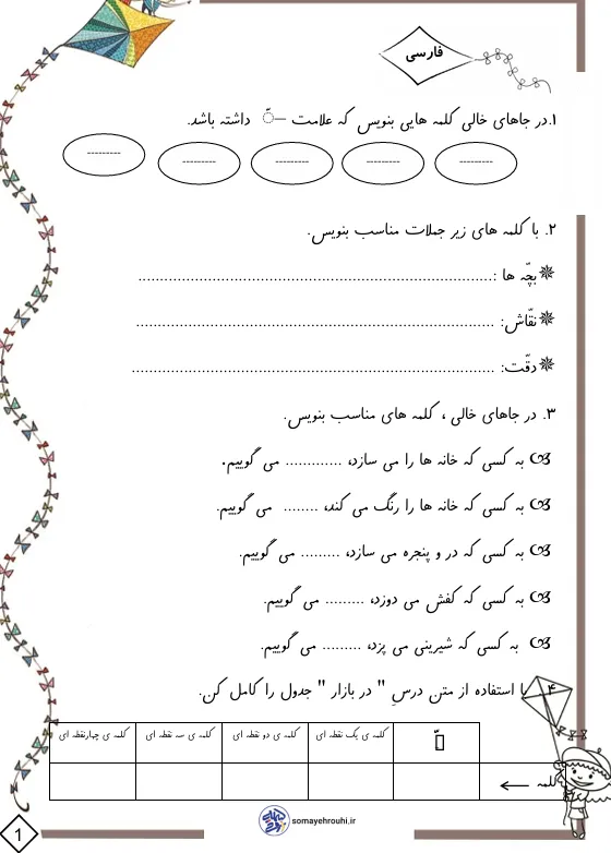 جملهسازی با کلمههای داده شده (مانند بچهها، نقاش، دقت و…)