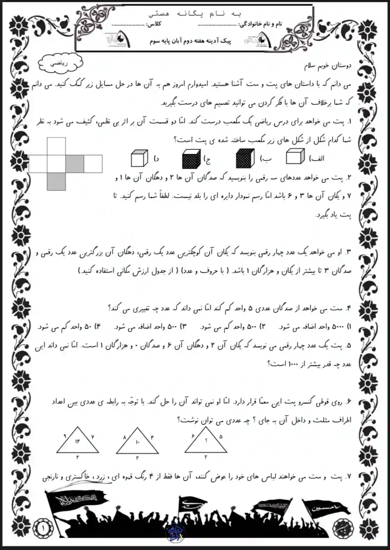 پیک آدینه هفته دوم آبان پایه سوم دبستان