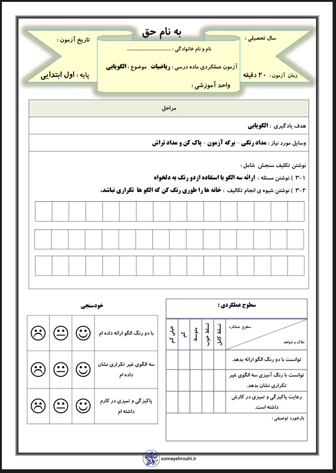این کاربرگ با عنوان «کاربرگ چوب خط» برای دانشآموزان پیشدبستانی و کلاس اول طراحی شده است. هدف اصلی آن آموزش مفاهیم پایهای ریاضی مانند شمارش و نمایش اعداد به روش چوبخط است. با استفاده از شکلهای ساده و دستورالعلات واضح، دانشآموزان میتوانند تعداد شکلها را بشمارند و معادل آن را به صورت چوبخط رسم کنند. این روش به تقویت مهارتهای بصری و ریاضی کودکان کمک میکند.