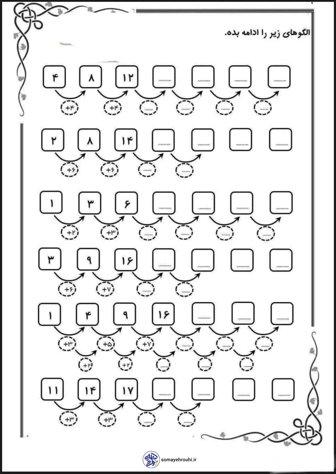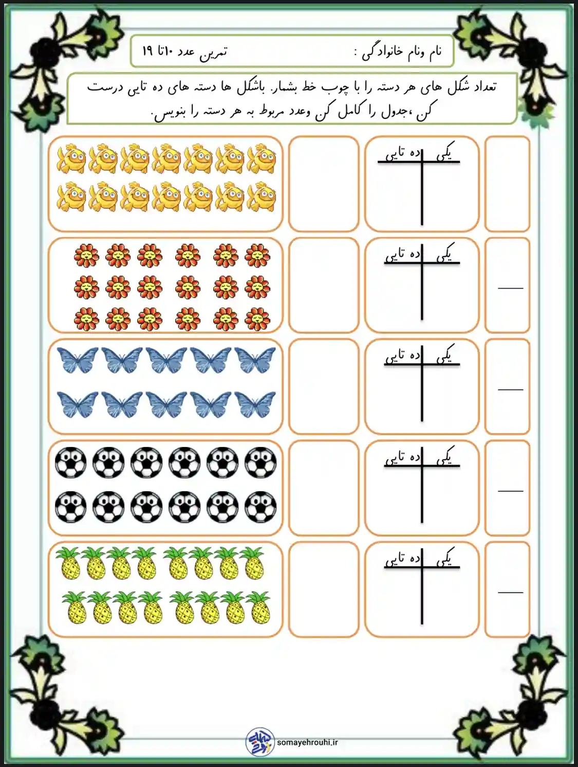 در بخش دیگری از کاربرگ، از دانشآموزان خواسته شده است که به هر مجموعه از شکلها، یک شکل جدید اضافه کنند و تعداد کل را دوباره با چوبخط نشان دهند. این تمرین نهتنها مفهوم جمع و افزایش تعداد را آموزش میدهد، بلکه باعث تقویت خلاقیت و درک روابط کمی در کودکان میشود. طراحی ساده و جذاب کاربرگ، آن را به ابزاری مؤثر برای یادگیری مفاهیم اولیه ریاضی تبدیل کرده است.