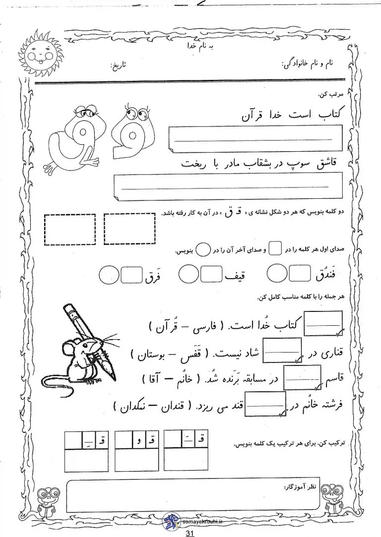 کاربرگ آموزش حرف (ق) اول دبستان