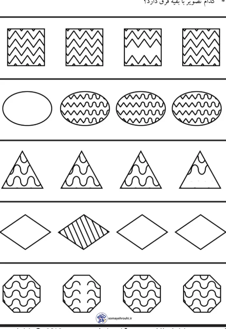 اهداف آموزشی این کاربرگ شامل تقویت هوش دیداری، افزایش توانایی مقایسه و تحلیل، پرورش تفکر منطقی و تقویت مهارت حل مسئله است. کودک با بررسی تصاویر و پیدا کردن گزینه متفاوت، یاد میگیرد جزئیات را دقیقتر ببیند و تصمیمگیری آگاهانهتری داشته باشد. این اهداف نقش مهمی در رشد ذهنی و آمادگی تحصیلی کودک ایفا میکنند.