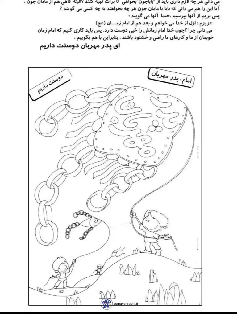 – شامل تمرین، رنگآمیزی و سؤالات ساده