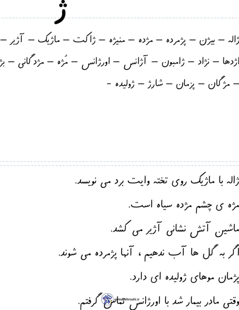 کاربرگ املا و روان خوانی نشانه (ژ) اول دبستان