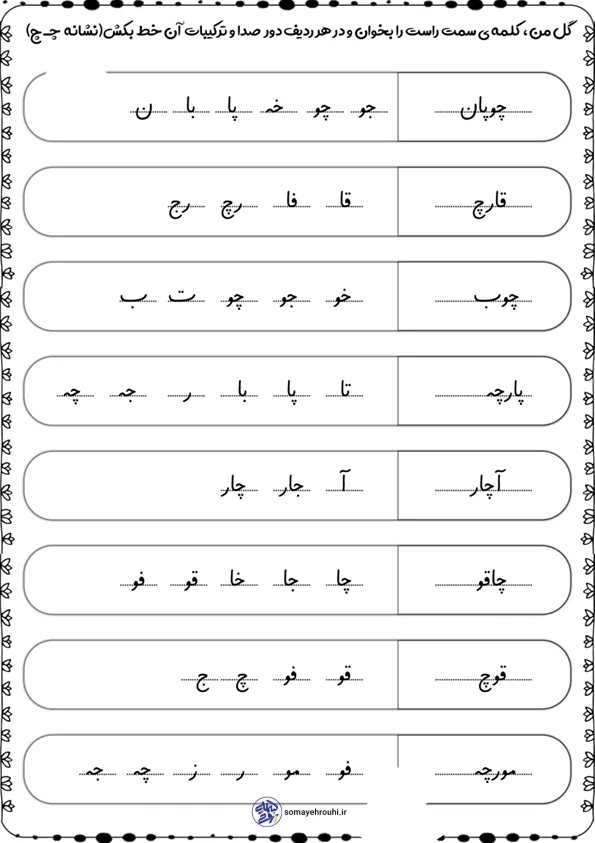 - تمرین روانخوانی با کلمات دارای نشانه «چ»