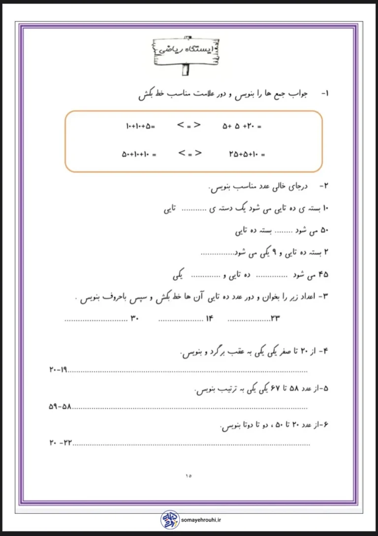 کاربرگ تمرینی اعداد ریاضی دوم دبستان