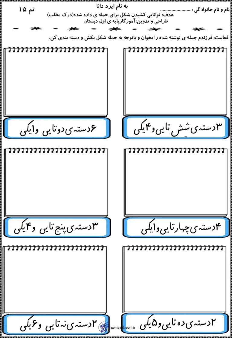 این کاربرگ مخصوص دانشآموزان دبستان و مطابق با تم ۱۵ کتاب ریاضی همان پایه طراحی شده است.