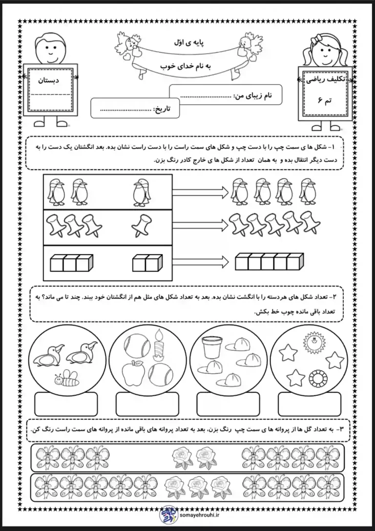 کاربرگ تم ۶ ریاضی اول دبستان