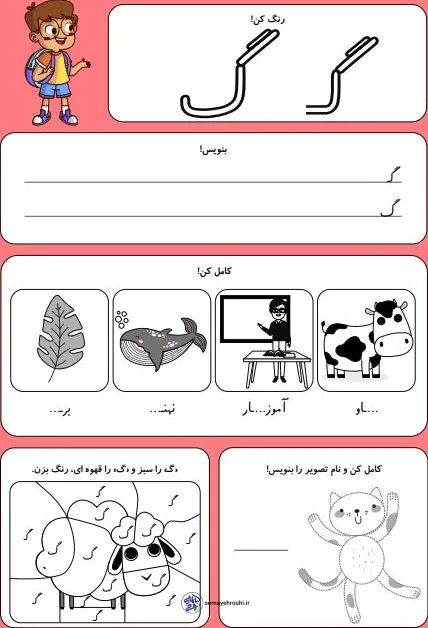 کاربرگ حروف الفبا نشانه گ کلاس اول دبستان