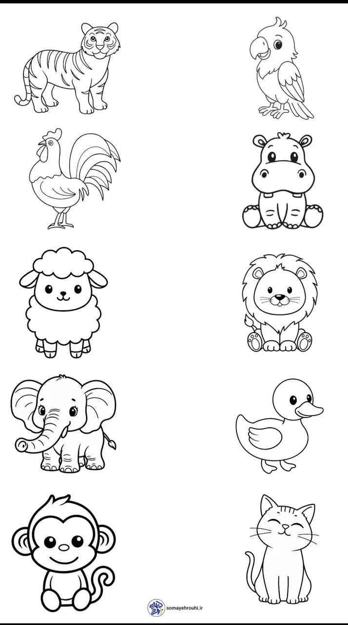کاربرگ حیوانات اهلی و وحشی با تمرکز بر حیوانات اهلی و وحشی طراحی شده است تا کودکان به کمک تصاویر واضح، با انواع حیوانات و تفاوتهای آنها آشنا شوند. در این کاربرگ تصاویر متنوعی از حیوانات مانند گوسفند، اردک، خروس، گربه، شیر، پلنگ، فیل، میمون و اسب آبی ارائه شده است که کودک باید آنها را مشاهده کرده و تشخیص دهد کدام حیوان اهلی است و کدام وحشی.