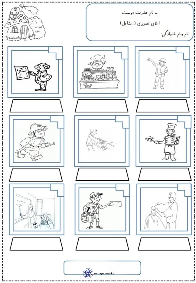 کاربرگ املا تصویری (مشاغل) اول دبستان