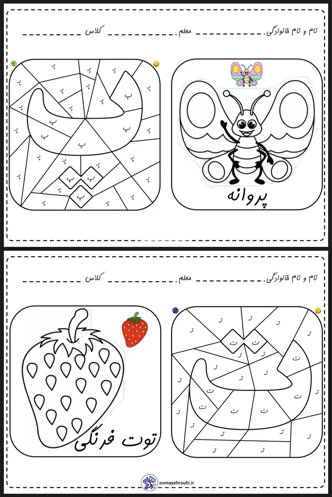 کاربرگ رنگ آمیزی نشانه (پ – ت) پیش دبستان