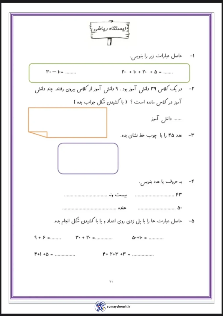 - جامعیت مفاهیم پایه: این تمرینات به طور همزمان به جمع، تفریق، درک عدد و نوشتار (به حروف) میپردازند و یک مرور کامل از مباحث کلیدی را ارائه میدهند.