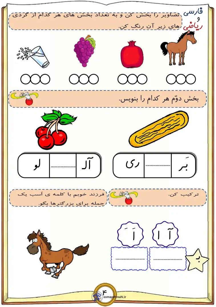 این کاربرگ مخصوص یادگیری صدای اول (هم آغاز) میباشد که مناسب پایه اول دبستان است.