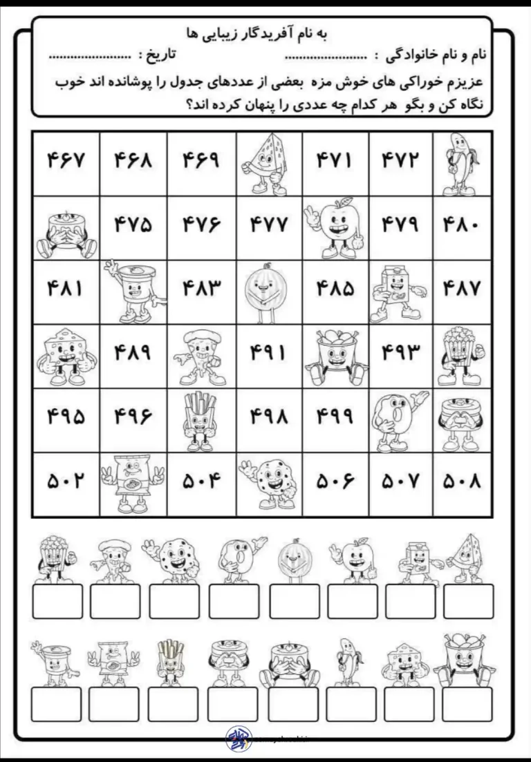 از مهمترین اهداف این کاربرگ میتوان به تقویت عددنویسی صحیح، افزایش دقت در تشخیص ترتیب اعداد، تقویت مهارت مشاهده و تفکر منطقی اشاره کرد. دانشآموزان یاد میگیرند با دقت به جدول اعداد نگاه کرده و عدد پنهانشده در هر تصویر را تشخیص دهند. این فعالیتها به درک بهتر توالی اعداد و تثبیت یادگیری مفاهیم عددی پایه دوم کمک شایانی میکند و اعتمادبهنفس دانشآموز را در حل تمرینهای ریاضی افزایش میدهد.