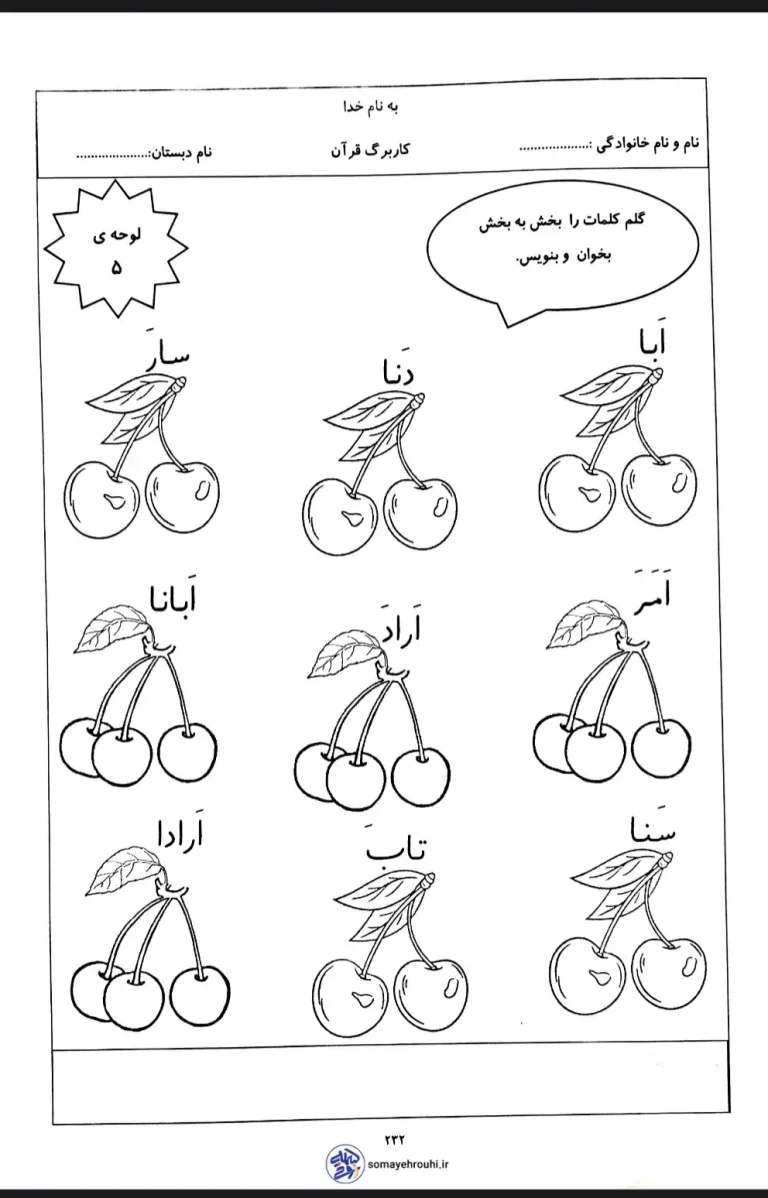 کاربرگ قرآن لوحه ۵ پایه اول دبستان