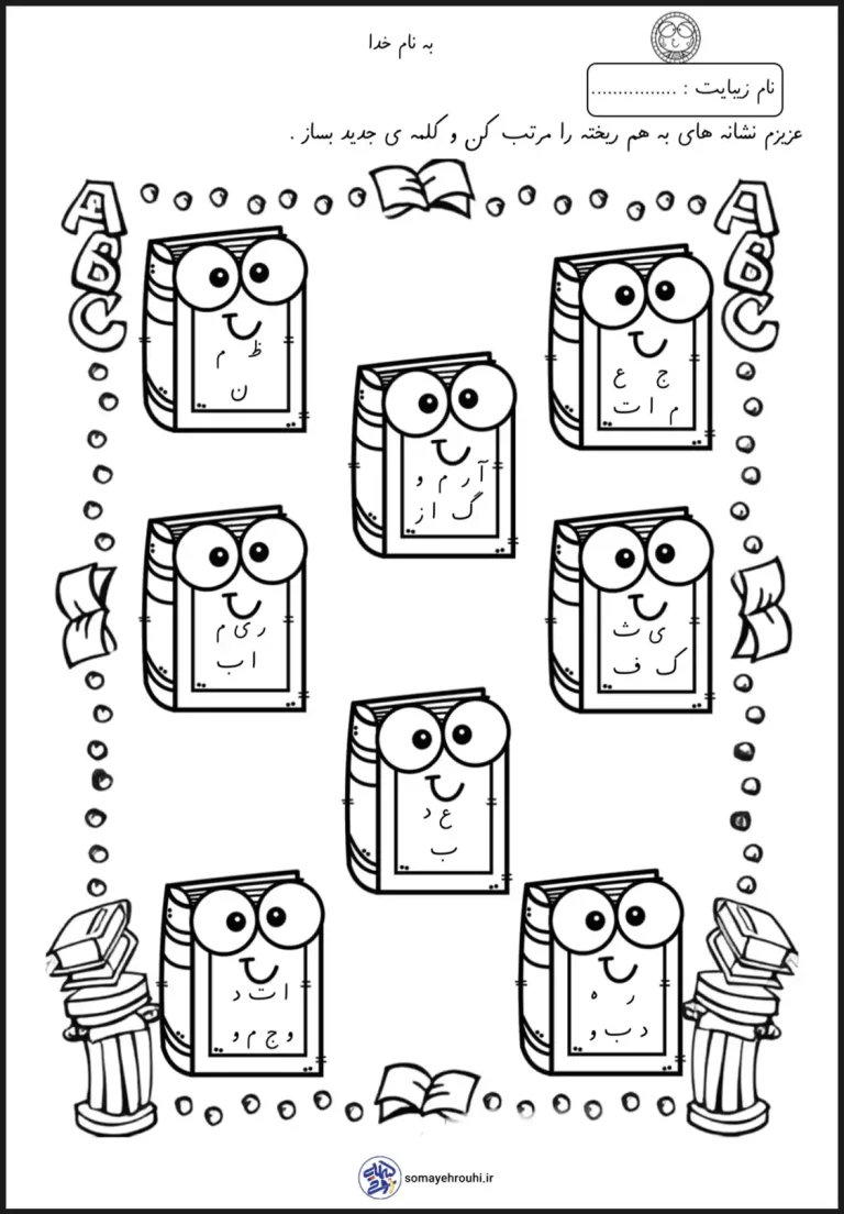 این کاربرگ مرتب کردن نشانه های به هم ریخته فارسی دوم دبستان یک فعالیت آموزشی جذاب و بصری است که برای تقویت مهارتهای اولیه خواندن و نوشتن در زبان فارسی طراحی شده است. دانشآموزان در این تمرین با مجموعهای از نشانهها و حروف درهمریخته مواجه میشوند که هر مجموعه درون یک کتاب کارتونی قرار گرفته است. وظیفهی آنها این است که با مرتب کردن این نشانهها، یک کلمهی معنادار جدید بسازند و آن را در فضای مشخصشده بنویسند. این فعالیت علاوه بر اینکه یک تمرین برای درس فارسی است، جنبهی سرگرمی و بازی فکری نیز دارد که باعث افزایش انگیزه در کودکان میشود و فضای خشک آموزش را تعدیل میکند.