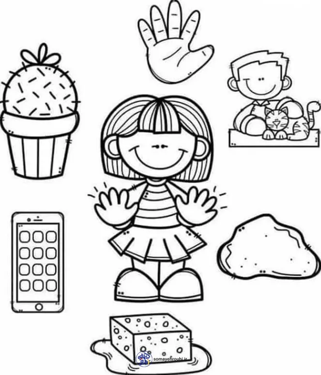 از دانشآموز خواسته میشود با دقت به تصاویر نگاه کند و تشخیص دهد لمس کدام وسیله حس خوب و خوشایند دارند و کدامیک حس بد یا ناخوشایند. سپس تصاویر مربوط به حس های خوب را در دایرههای اطراف دست قرار دهد یا آنها را به محل مناسب وصل کند.