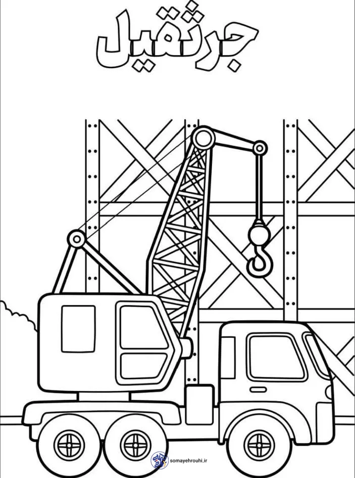 در این کاربرگ تصویر یک جرثقیل طراحی شده تا کودک علاوه بر رنگآمیزی، با شکل و کاربرد این وسیله نقلیه آشنا شود.