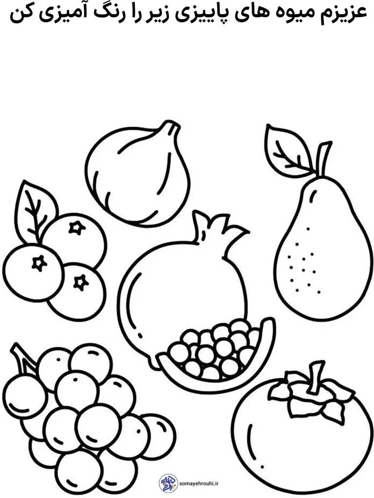این فعالیت علاوه بر سرگرمی، به کودکان کمک میکند تا با میوههای فصل پاییز، شکل و نام آنها آشنا شوند و مهارت رنگآمیزی و هماهنگی چشم و دست خود را تقویت کنند.