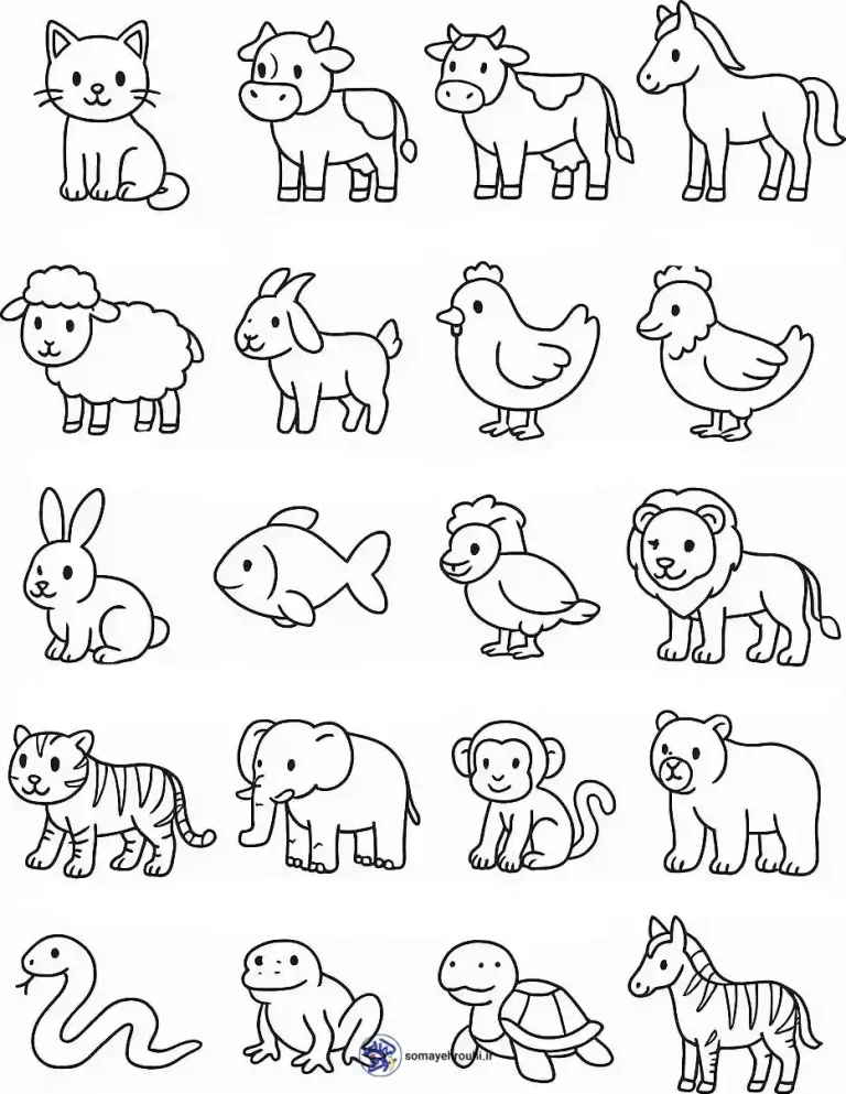 محتوای آموزشی غنی: این کاربرگ شامل مجموعهای از 20 تصویر از حیوانات متنوع است که به دقت انتخاب شدهاند تا هم حیوانات اهلی و هم حیوانات وحشی را پوشش دهند. حیواناتی مانند گربه،گاو،اسب،گوسفند،بز،مرغ،خروس،
