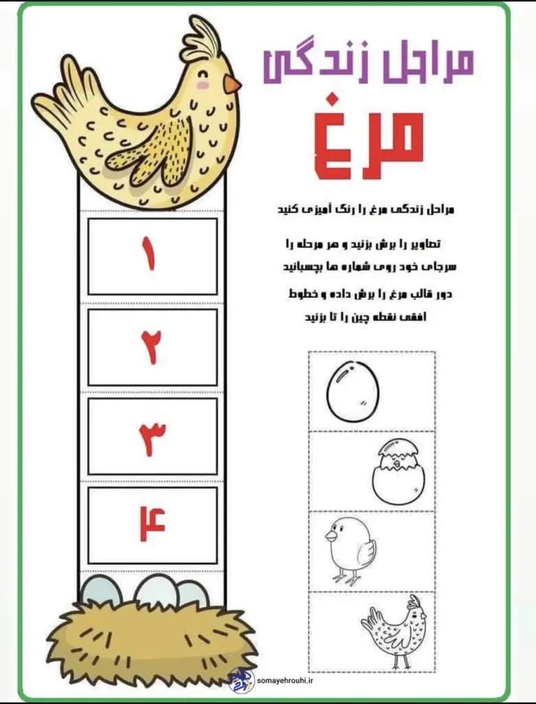 کاربرگ پیش دبستانی مراحل رشد مرغ