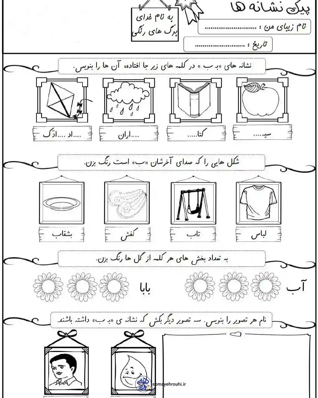 مشاهده بزرگ آموزش حروف الفباپایه اولکاربرگ آزمونکاربرگ های فارسی پایه اول آزمون فارسی نشانه ب اول دبستان