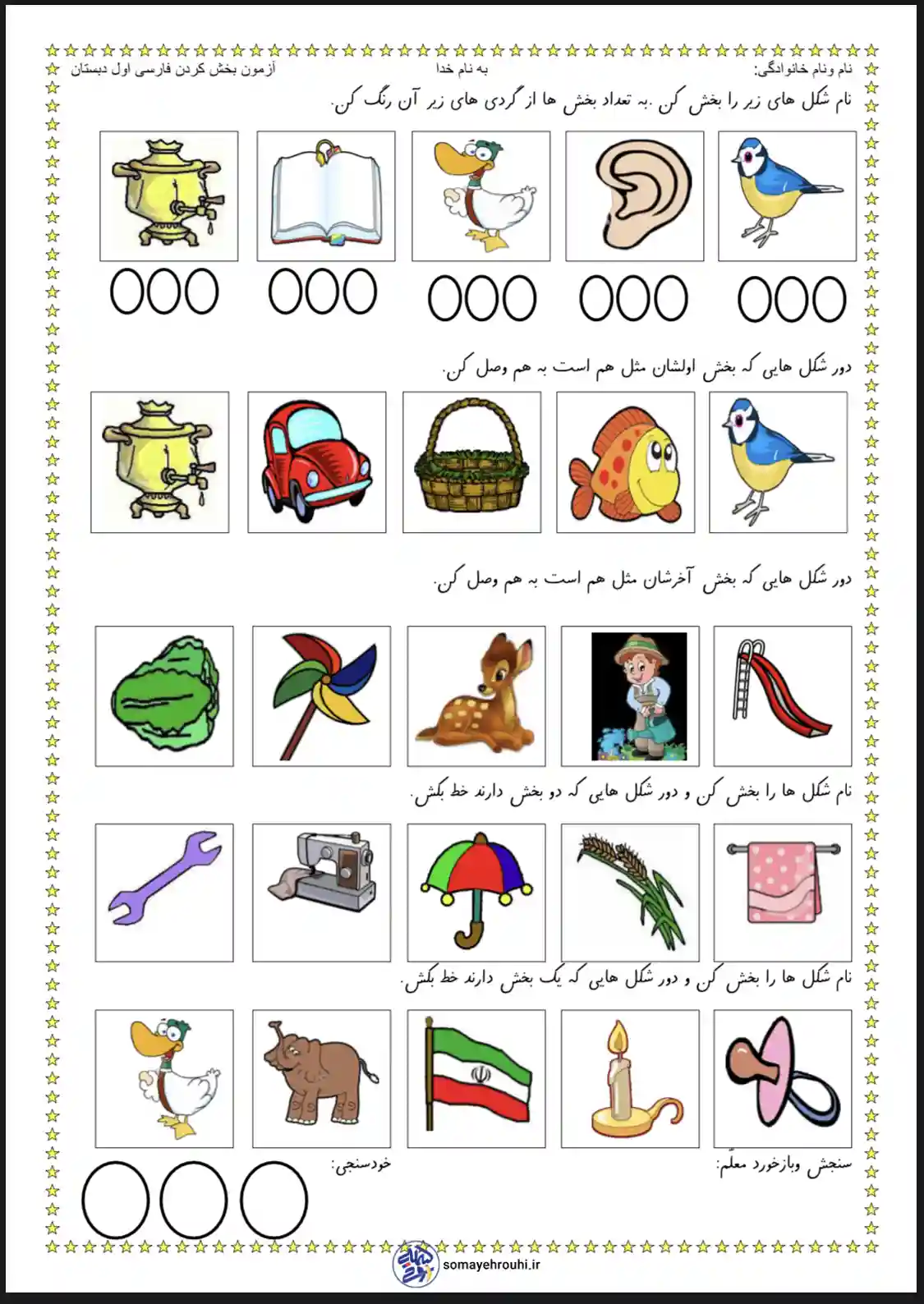مشاهده بزرگ پایه اولکاربرگ آزمونکاربرگ های ریاضی پایه اولکاربرگ های فارسی پایه اول پیک آدینه هفته اول آبان ماه پایه اول دبستان