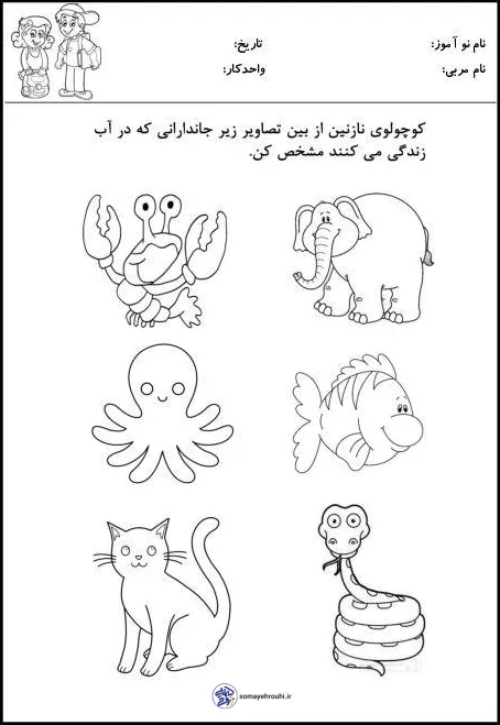 دانلود کاربرگ واحدکار آبزیان پیش دبستان